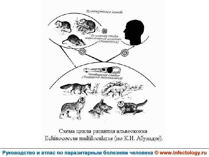 Альвеолярный (многокамерный) эхинококкоз человека (альвеолярный гидатидоз) (шифр по МКБ 10 - B 67. 5 -7) – зоонозный биогельминтоз, характеризующийся чрезвычайно тяжелым хроническим течением, первичным опухолевидным поражением печени, нередко с метастазами в головной мозг и легкие, а также во многие другие органы. Заболевание часто заканчивается летально.