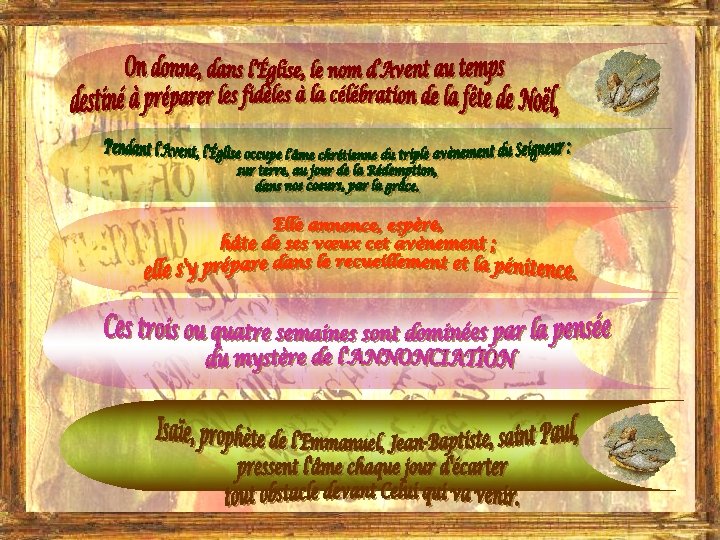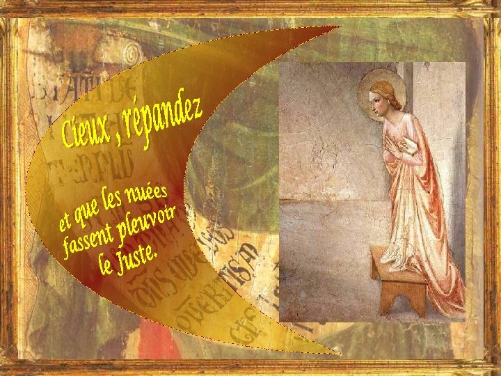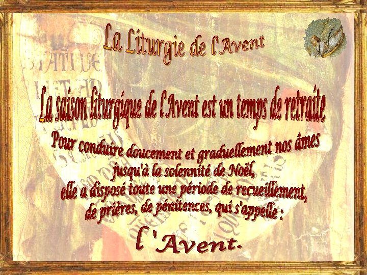Aujourd’hui sachez que le Seigneur viendra ; demain, à l’aurore, vous verrez sa gloire. ( Ex. 16, 6. 7) « VENI: VIENS » : tous les textes trahissent, intensifient ce désir avec une impatience toujours plus accentuée. Le sentiment dominant de ces quatre semaines, c’est le désir immense de recevoir Jésus.