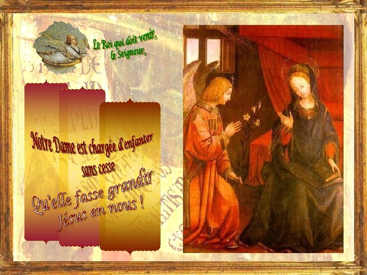 vous qui l’aviez déjà en vous, mais sans le connaître ; qui le possédiez, sans le goûter. Faites place à l’Enfant divin ; car il voudra croître en vous. Le moment approche : que votre cœur se réveille ; et dans la crainte que le sommeil ne vous ait surpris quand il passera, veillez et chantez.