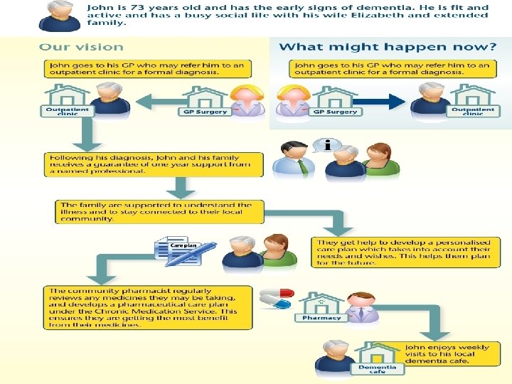 Deferred Interventions - Dementia Care Assistive Technology Maximising social capital Positive risk taking Listening to cares and users views Dementia cafes Dementia Advisors Dementia Support Workers Dementia awareness Training Supporting care homes Dementia Friendly communities Personal Assistants - Dementia Early Diagnosis – GP awareness Assistive Technology Positive risk taking Listening to cares and users views Memory Assessment Reducing use of antipsychotics Dementia Trained workforce in hospitals Supporting nursing homes Primary Care Co-ordinators End of Life Care