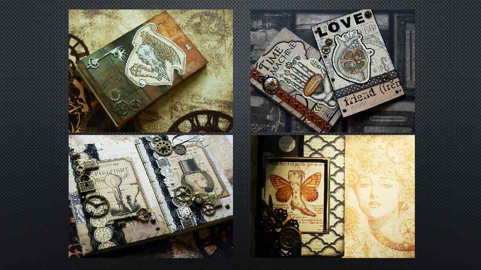 ФАБРИЧНЫЕ МАТЕРИАЛЫ СУЩЕСТВУЕТ ОГРОМНОЕ КОЛИЧЕСТВО МАТЕРИАЛОВ, ПРИГОДНЫХ ДЛЯ СОЗДАНИЯ ДУХА ПАРОВЫХ МАШИН, ВИКТОРИАНСКОГО СТИЛЯ, ТОРЖЕСТВА МЕХАНИКИ - И СРЕДИ НИХ МЫ ВЫБИРАЕМ ЛУЧШИЕ. НАШ ФАВОРИТ ИЗ ФАБРИЧНЫХ МАТЕРИАЛОВ – ЛИНЕЙКА БУМАГИ «СТИМПАНК ДЕБЮТАНТ» ОТ АМЕРИКАНСКОЙ КОМПАНИИ GRAPHIC 45. ЕСТЕСТВЕННО, МАСТЕРА ИСПОЛЬЗУЮТ НЕ ТОЛЬКО ЕЕ, НО В ТАКИХ ИЗДЕЛИЯХ ВОЛШЕБНО СОЧЕТАЮТСЯ С НУЖНЫМИ НОТАМИ ОБРАБОТКИ ШЕДЕВРОВ АЛЬФОНСА МУХИ СТИЛЯ МОДЕРН.