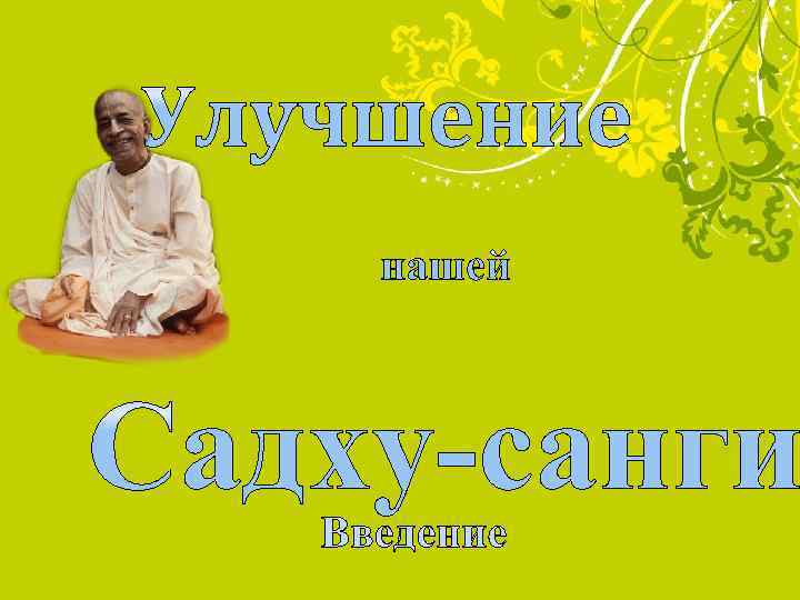 «Чайтанья. Махапрабху … говорит: садхусанга садху- сангасарва-шастрекайа, лава -матра садху-сангасарва-сиддхихайа[ ЧЧ. Мадхья 22. 54]. Садху-санга очень важна. Если мы будем общаться с настоящим садху, чистым беспримесным преданным, аньябхилашита-шуньямгьяна-кармадианавритам [Бхакти–расамрита-синдху 1. 1. 11], тогда просто благодаря такому общению придет все совершенство» . Лекция по Бхагавад- гите 6. 47 – Ахмедабад, 12 декабря 1972 года.