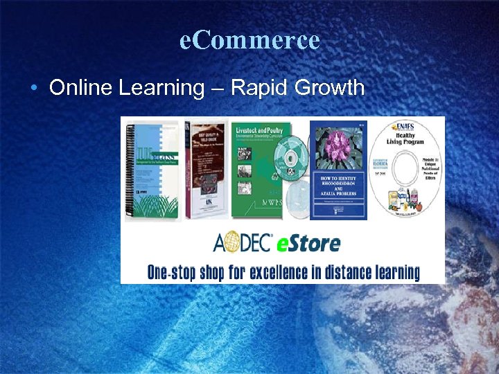 e. Commerce • Online Learning – Rapid Growth