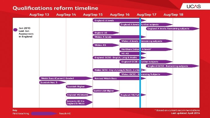 2017 entry • • • Reformed A levels across the UK. Small number of reformed GCSEs (9 – 1) entering HE. Welsh Baccalaureate Skills Challenge Certificate. Reformed Welsh GCSEs – Maths and Numeracy Small number of reformed VQs. Continued rollout of the Curriculum for Excellence.