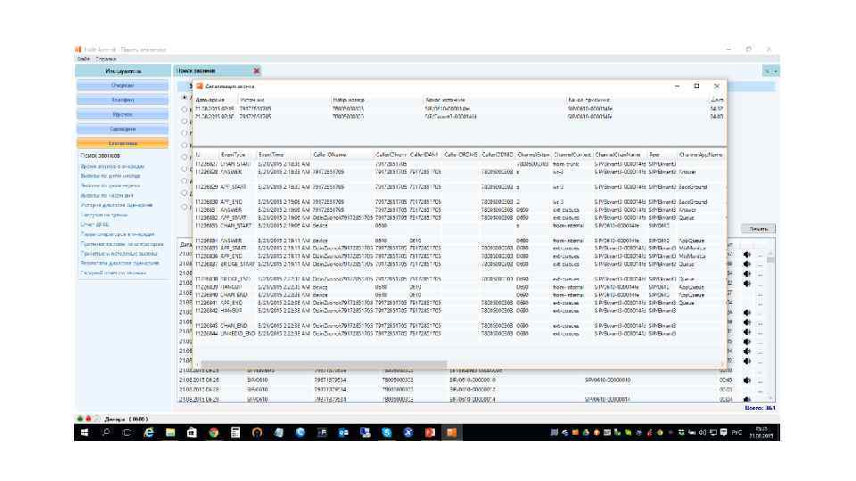 Channel Event Logger Основные объекты, которыми оперирует Asterisk – это каналы. CEL занимается тем, что пишет в файл или базу все события, происходящие с момента появления первого канала звонка. Каждый звонок автоматически получает уникальный идентификатор (не путать с уникальным идентификатором канала). Каждый эвент звонка записывается с присвоением идентификатора звонка. Поэтому мы легко можем найти все события, происходившие во время звонка, по его идентификатору. Типы событий в CEL: CHAN_START Канал был создан CHAN_END Канал был терминирован LINKEDID_END Последний канал с указанным linkedid был терминирован ANSWER Канал перешел в отвеченное состояние HANGUP На канале повесили трубку. APP_START Приложение начало выполнение на канале. APP_END Приложение завершило выполнение на канале PARK_START Канал был припаркован PARK_END Канал покинул парковку BRIDGE_START Установлен мост между каналами. BRIDGE_END Мост между каналами разорван BLINDTRANSFER На канале выполнен перевод без уведомления ATTENDEDTRANSFER На канале выполнен перевод с уведомлением