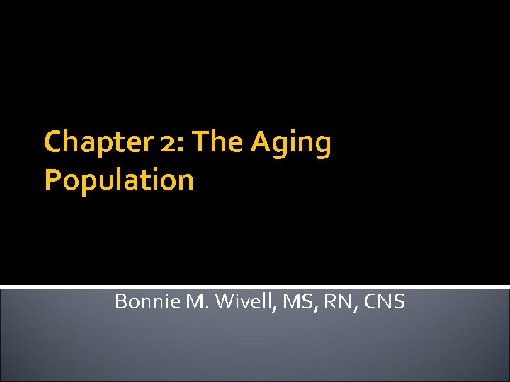 Chapter 2: The Aging Population Bonnie M. Wivell, MS, RN, CNS