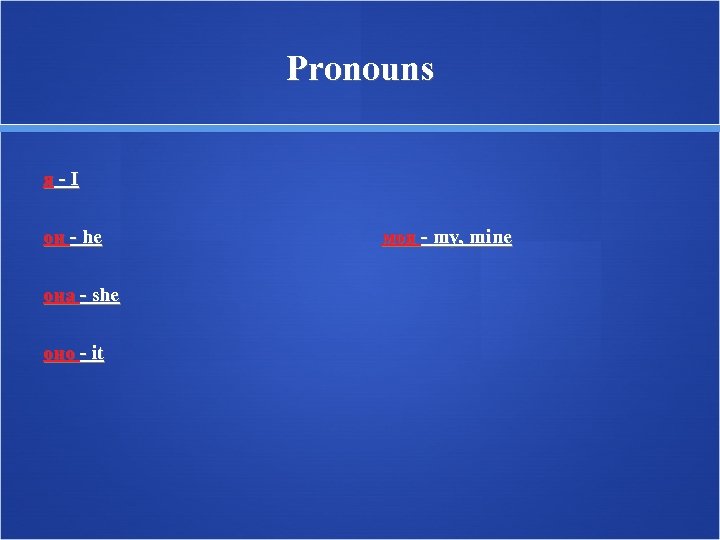 Pronouns я-I он - he она - she оно - it моя - my, mine