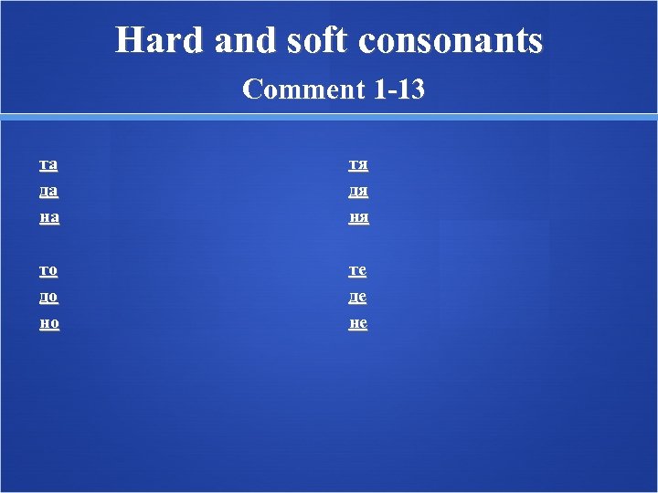 Hard and soft consonants Comment 1 -13 та да на тя дя ня то до но те де не