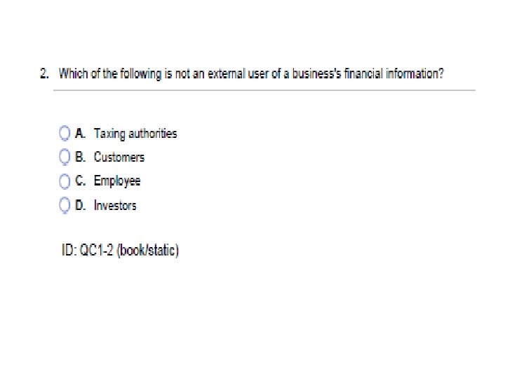 7. At the end of a recent year, Global Cleaning Service, a full-service house and office cleaning service, had total assets of $3, 630 and equity of $2, 280. How much were Global Cleaning Service’s liabilities? Assets=Liabilities+Equity $3, 630=? +$2, 280 $3, 630=$1, 350+$2, 280