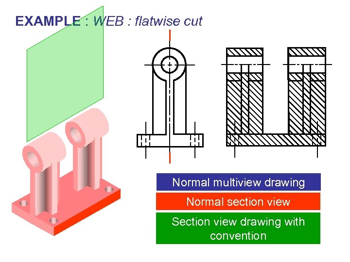 EXAMPLE : WEB : flatwise cut Normal multiview drawing Normal section view Section view drawing with convention
