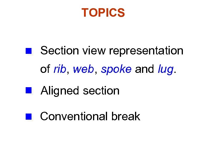 TOPICS Section view representation of rib, web, spoke and lug. Aligned section Conventional break