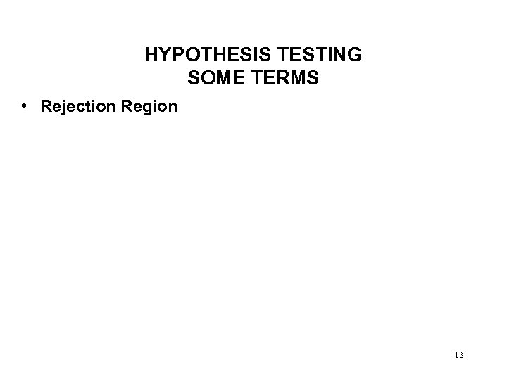 HYPOTHESIS TESTING SOME TERMS • Rejection Region 12