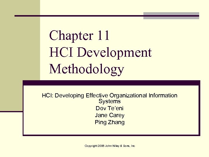 Chapter 11 HCI Development Methodology HCI: Developing Effective Organizational Information Systems Dov Te’eni Jane Carey Ping Zhang Copyright 2006 John Wiley & Sons, Inc
