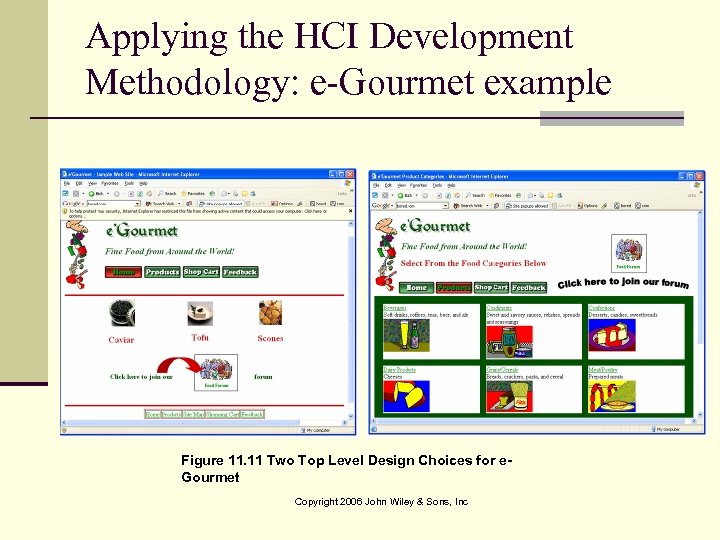 Applying the HCI Development Methodology: e-Gourmet example Figure 11. 11 Two Top Level Design Choices for e. Gourmet Copyright 2006 John Wiley & Sons, Inc
