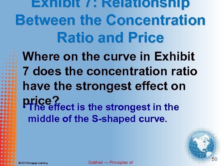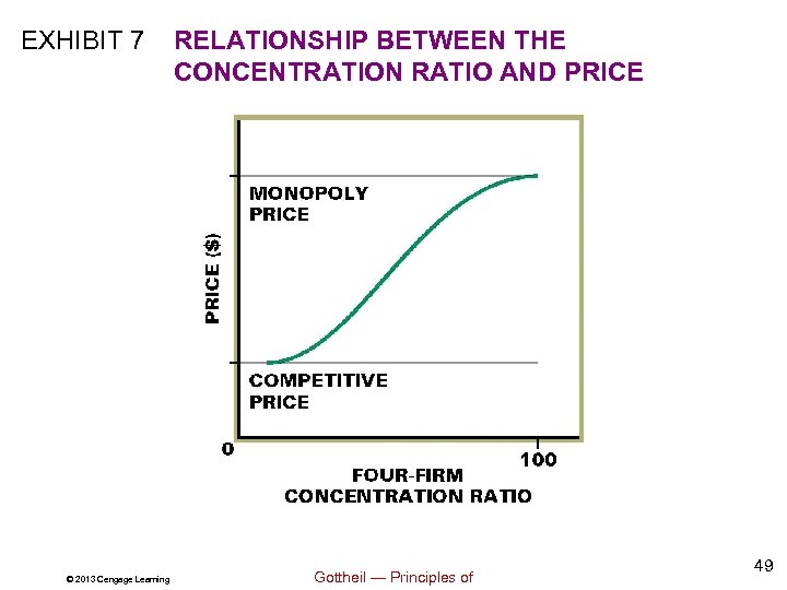 EXHIBIT 7 © 2013 Cengage Learning RELATIONSHIP BETWEEN THE CONCENTRATION RATIO AND PRICE Gottheil — Principles of 49