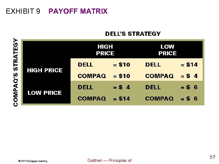 EXHIBIT 9 © 2013 Cengage Learning PAYOFF MATRIX Gottheil — Principles of 57