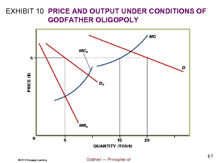 EXHIBIT 10 PRICE AND OUTPUT UNDER CONDITIONS OF GODFATHER OLIGOPOLY © 2013 Cengage Learning Gottheil — Principles of 61