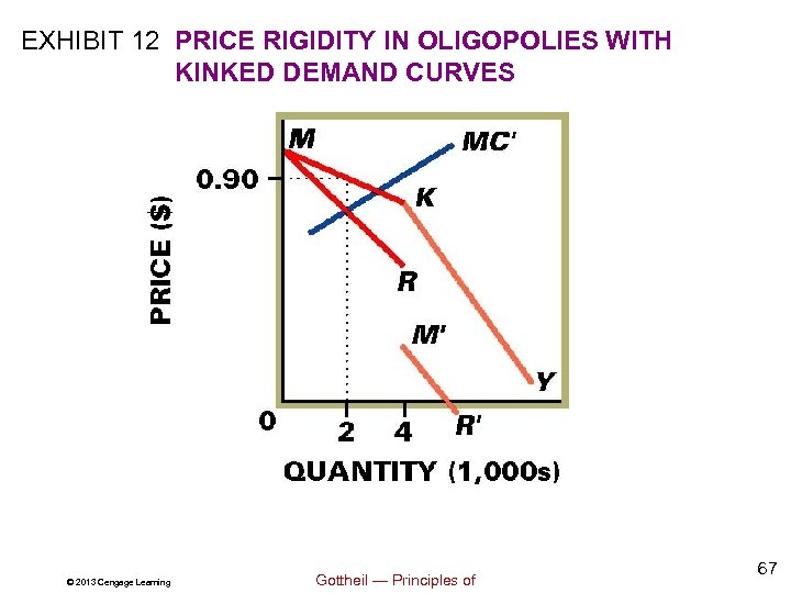 EXHIBIT 12 PRICE RIGIDITY IN OLIGOPOLIES WITH KINKED DEMAND CURVES © 2013 Cengage Learning Gottheil — Principles of 67