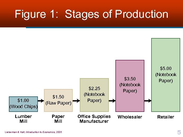 Figure 1: Stages of Production $1. 00 (Wood Chips) Lumber Mill $1. 50 (Raw Paper) Paper Mill Lieberman & Hall; Introduction to Economics, 2005 $2. 25 (Notebook Paper) Office Supplies Manufacturer $3. 50 (Notebook Paper) Wholesaler $5. 00 (Notebook Paper) Retailer 5