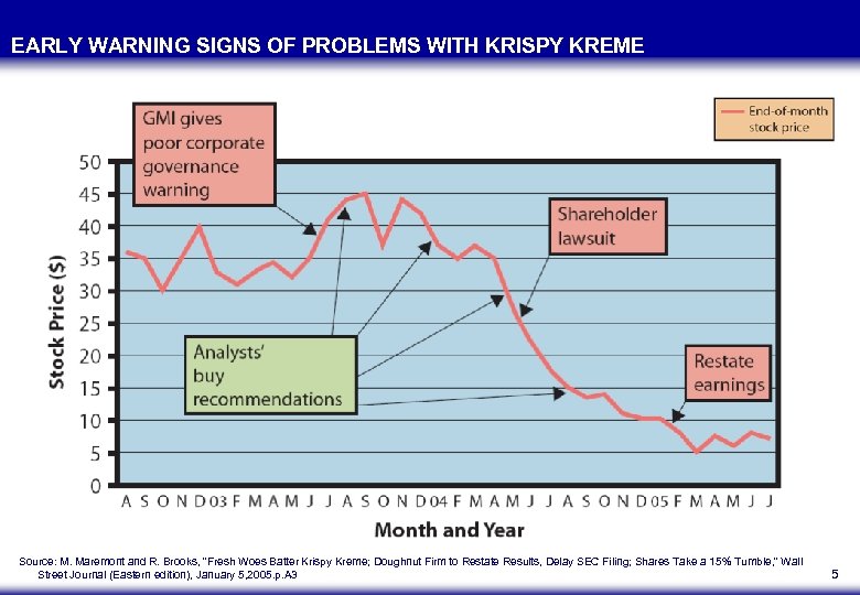 EARLY WARNING SIGNS OF PROBLEMS WITH KRISPY KREME Source: M. Maremont and R. Brooks, “Fresh Woes Batter Krispy Kreme; Doughnut Firm to Restate Results, Delay SEC Filing; Shares Take a 15% Tumble, ” Wall Street Journal (Eastern edition), January 5, 2005. p. A 3 5