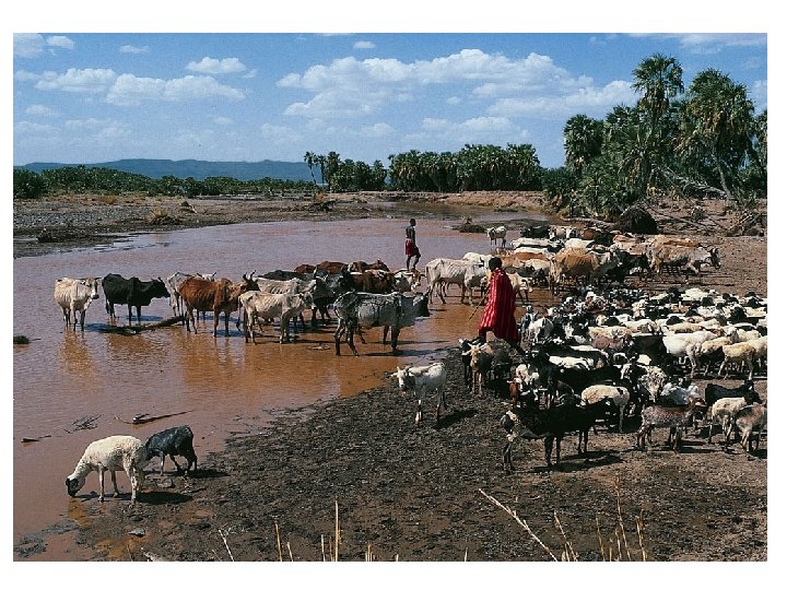 Tropical Lands & Peoples: Human Ecosystems • Human communities in arid areas of tropics relied on herding & supplemented their diets w/ grain & vegetables obtained through trade w/ settled agriculturalists • Most people were farmers who cultivated crops rice, wheat sorghum, millet, etc. depending on the conditions of soil, climate & water