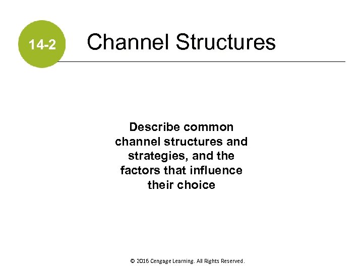 14 -2 Channel Structures Describe common channel structures and strategies, and the factors that influence their choice © 2016 Cengage Learning. All Rights Reserved.