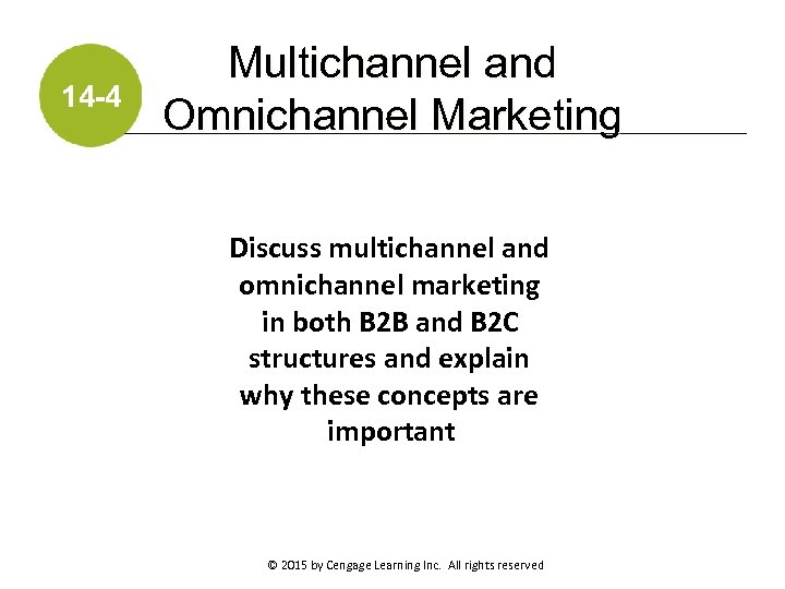 14 -4 Multichannel and Omnichannel Marketing Discuss multichannel and omnichannel marketing in both B 2 B and B 2 C structures and explain why these concepts are important © 2015 by Cengage Learning Inc. All rights reserved