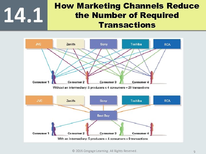 14. 1 How Marketing Channels Reduce the Number of Required Transactions © 2016 Cengage Learning. All Rights Reserved. 9