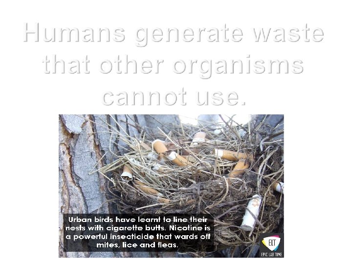 • In the natural world, detritivores and decomposers recycle wastes from other organisms • Only humans generate wastes that cannot be used by other organisms