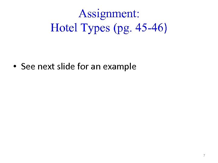 Assignment: Hotel Types (pg. 45 -46) • See next slide for an example 7