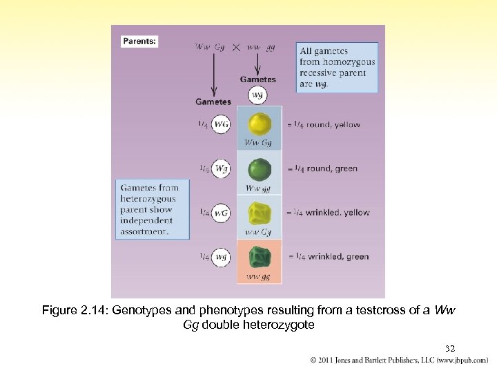 Figure 2. 14: Genotypes and phenotypes resulting from a testcross of a Ww Gg double heterozygote 32