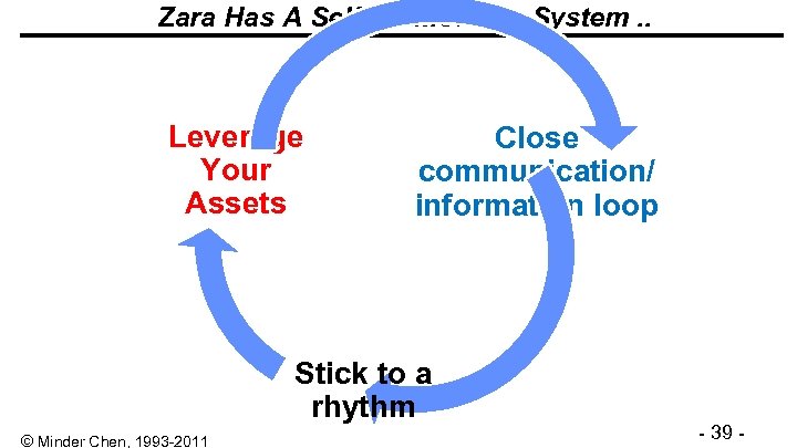 Zara Has A Self-Reinforcing System. . Leverage Your Assets Close communication/ information loop Stick to a rhythm © Minder Chen, 1993 -2011 - 39 -