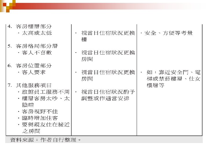 排房 1. 排房之時機 原則上客房愈早排定愈佳, 在實際作業 但 時 , 半 於 到 達 日 當 天 上 午 進 行 : 特 殊 狀 多 況時,可能提前至前一天或更早。