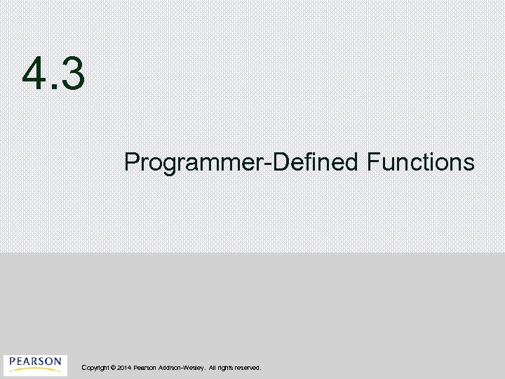 4. 3 Programmer-Defined Functions Copyright © 2014 Pearson Addison-Wesley. All rights reserved.