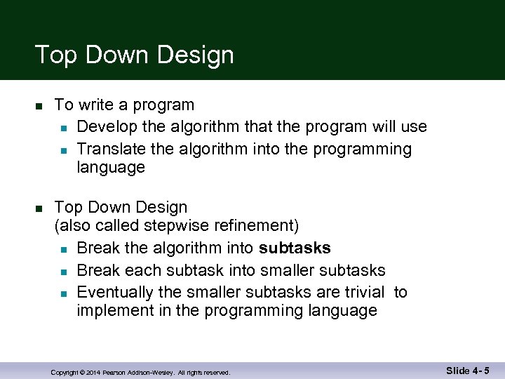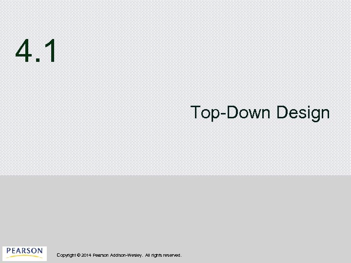 4. 1 Top-Down Design Copyright © 2014 Pearson Addison-Wesley. All rights reserved.