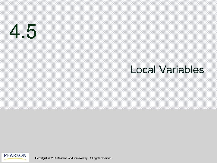 4. 5 Local Variables Copyright © 2014 Pearson Addison-Wesley. All rights reserved.