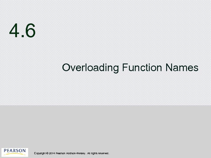 4. 6 Overloading Function Names Copyright © 2014 Pearson Addison-Wesley. All rights reserved.