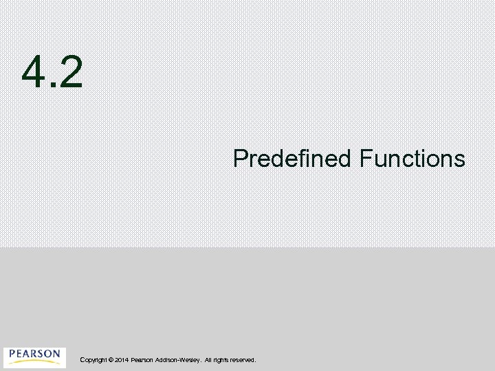 4. 2 Predefined Functions Copyright © 2014 Pearson Addison-Wesley. All rights reserved.