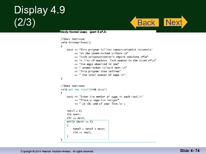 Display 4. 9 (2/3) Copyright © 2014 Pearson Addison-Wesley. All rights reserved. Back Next Slide 4 - 74