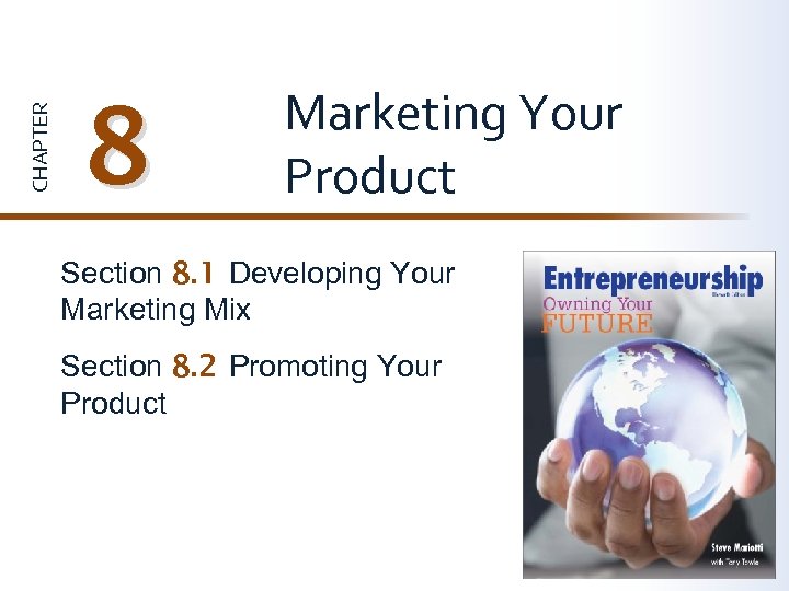 CHAPTER 8 Marketing Your Product Section 8. 1 Developing Your Marketing Mix Section 8. 2 Promoting Your Product