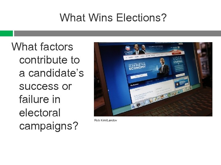 What Wins Elections? What factors contribute to a candidate’s success or failure in electoral campaigns? Rob Kim/Landov