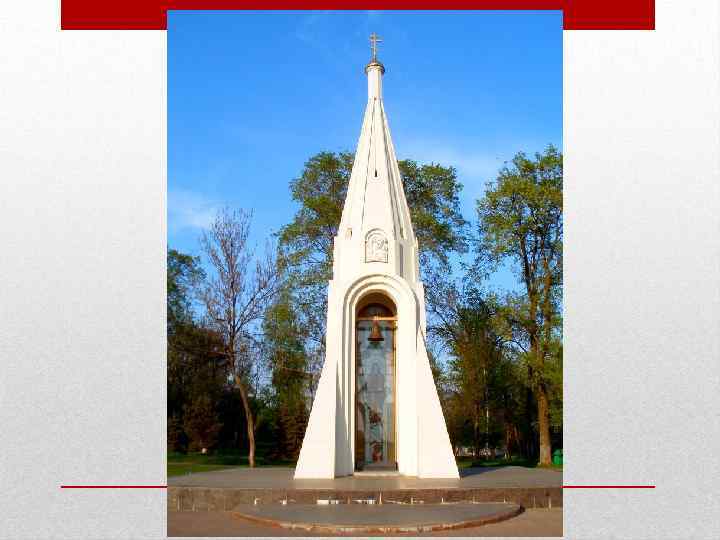 • Часо вня — небольшая христианская постройка культового назначения с иконами, не имеющая особого помещения, где располагается алтарь. • В часовнях читаются молитвы и акафисты, совершаются молебны, верующие ставят свечи перед почитаемыми иконами и т. п. Литургия в часовне по общему правилу не совершается, но в особых случаях это допускается.