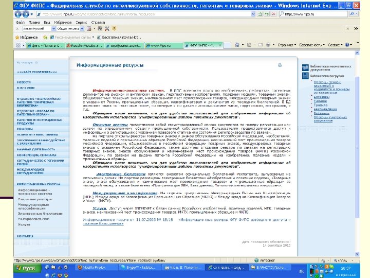 Информационные ресурсы ФГУ ФИПС http: //www 1. fips. ru Международная патентная классификация (МПК) Реферативная информация об изобретениях: заявки, патенты на изобретения, патенты на полезные модели 1994 -2014 гг. Полные тексты патентов за 1924 -2014 гг.
