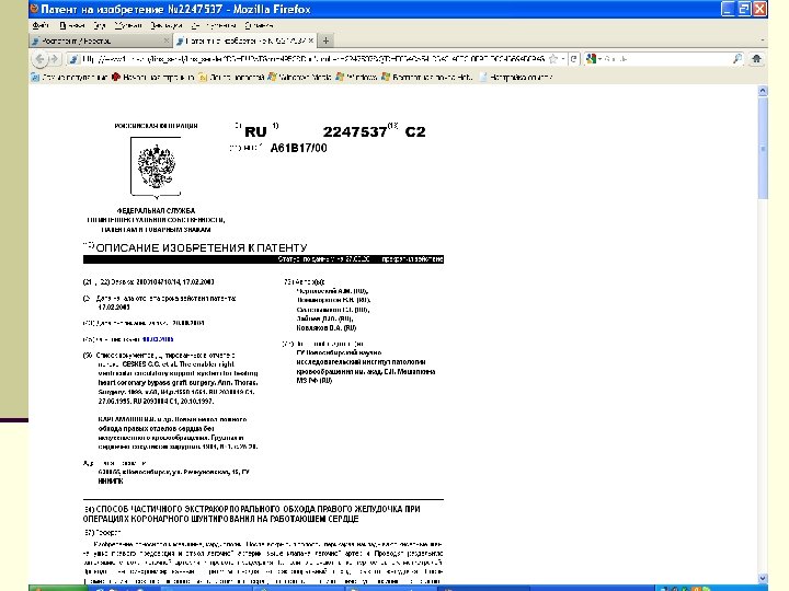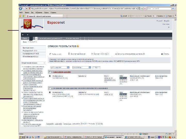 Патентные ресурсы Интернет Россия — информационные ресурсы ФГУ ФИПС (РОСПАТЕНТ). Мировой фонд — БД Европейского патентного ведомства (ЕПО)