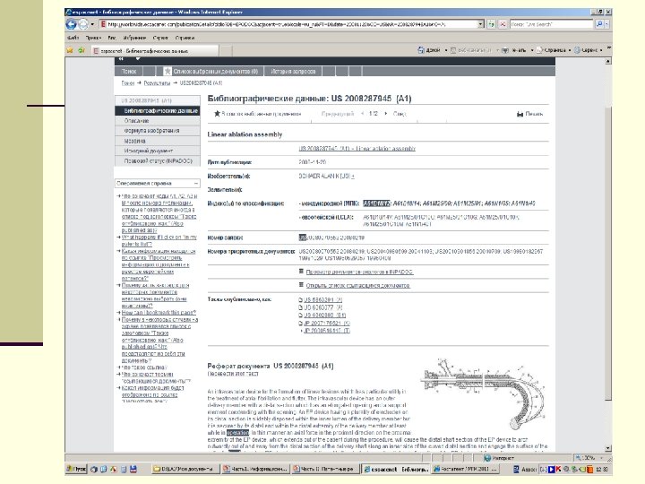 Расширенный поиск Поисковый запрос: 1. Тема – хирургические инструменты, устройства или способы для переноса немеханических форм энергии на тело человека высокочастотными токами – МПК А 61 В 18/12; 2. Страна – США; 3. Ключевые слова – сердце И операции heart AND operation
