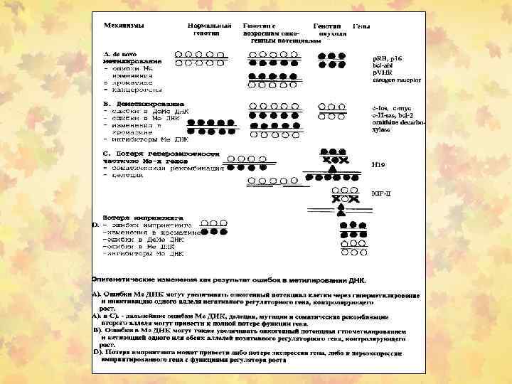 Примеры гиперметилирования некоторых генов