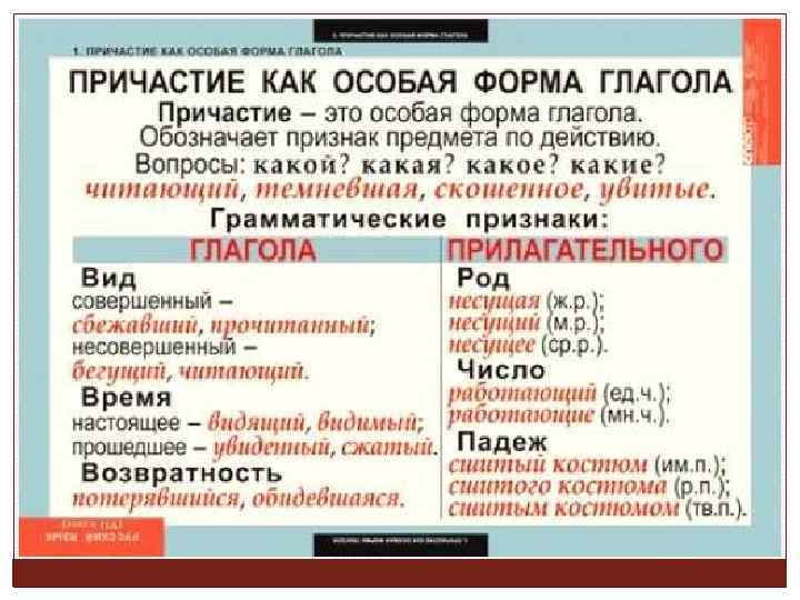 Причастие — это особая форма глагола, которая обозначает признак предмета по действию и отвечает на вопросы какой? какая? какое?