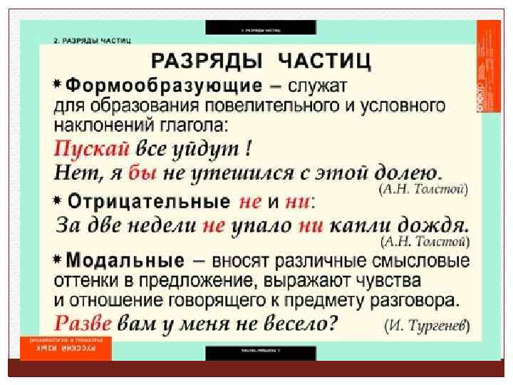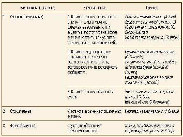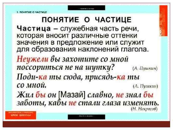 Частицы Примеры Части речи ( служебные) Примечание