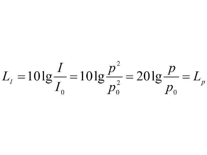 Звуковая мощность P, Вт • Разговор 10 -5 • Наибольшая мощность человеческого голоса 2 10 -3 • Фортепиано 2 10 -3 • Труба 0, 3 • Автосигнал 5 • Громкоговоритель 10 2 • Сирена 3 10 3 • Реактивный двигатель 10 4 • Ракетный двигатель 10 6