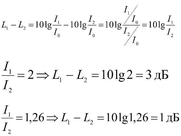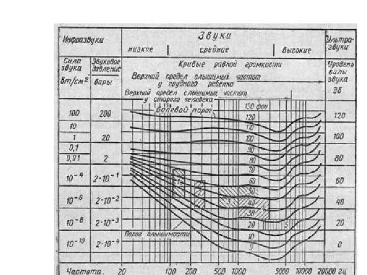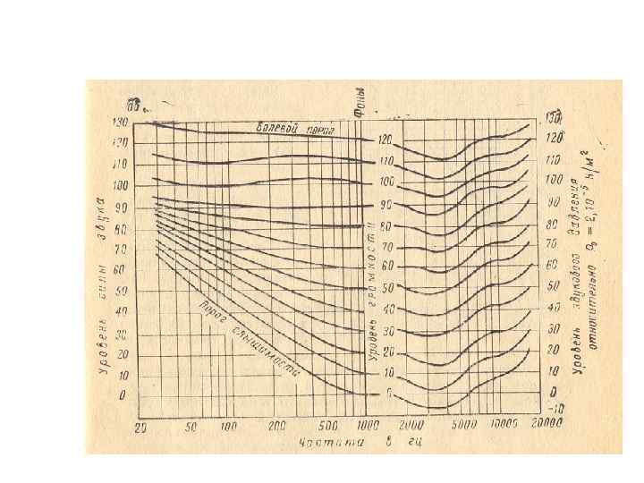 • Частота 100 Гц, звуковая мощность 0, 25 Вт • Частота 1000 Гц, звуковая мощность 0, 02 Вт – звуки кажутся слушателю равногромкими